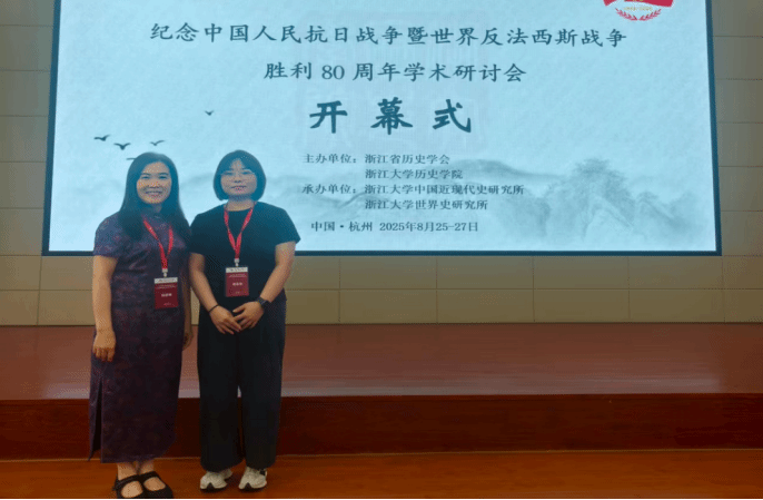 2025年8月25—27日,纪念中国人民抗日战争暨世界反法西斯战争胜利 80周年学术研讨会在杭州成功召开。此次会议由浙江省历史学会与浙江大学历史公司主办,浙江大学中国近现代史研究所及浙江大学世界历史研究所共同承办。来自浙江大学、南京大学、华南理工大学、电子科技大学、杭州师范大学、浙江省社科院、山西省社科院、福建省委党校等二十多所高校及科研单位的专家学者与会,ladbrokes立博银龄教师徐树英、中国近现代史纲要教研室教师徐亚旭应邀参会。
