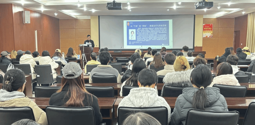 为深化应用心理学专业员工对家庭治疗理论与系统思维的理解,拓宽心理干预实践视野,ladbrokes立博应用心理学专业于11月19日在4218会议室举办“心理大讲堂”系列学术讲座之“从个体到系统:家庭治疗与系统思维”专题讲座。本讲座立足系统思维的核心原则,如循环因果、家庭稳态等,通过理论讲解与技术示例,帮助员工建立系统观,从而更全面、深刻地理解人类心理与行为未来的学习与实践开启一扇新的大门。应用心理学专业师生共100余人参与此次讲座。