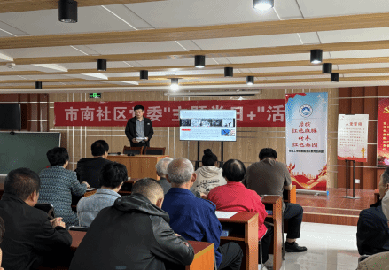 红歌是中国共产党百年发展历程的缩影。宣讲现场,解涛博士为大家讲述《红色光影中的青春之歌》,他用朴实的语言重现往日革命先辈们的奋斗历程,用洪亮的声音传递战士们为祖国勇于奉献的精神。《洪湖水浪打浪》《唱支山歌给党听》《我和我的祖国》《春天的故事》……一首首耳熟能详的音乐响起,引起了在场观众的强烈共鸣。