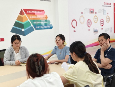座谈会以“你最喜欢哪门专业课?喜欢哪个环节?”为起点,员工们结合学习经历畅谈感悟。有员工对理论课程中的案例讨论环节印象深刻,分享道:“在课堂中,我们通过角色扮演还原真实服务场景,这种‘沉浸式学习’让我体会到社会工作的科学性与艺术性。”教师团队积极回应员工期待,教研室主任宋文芳表示,未来将强化“双师课堂”模式,定期邀请一线社工参与教学,推动课堂与社会议题深度联结。