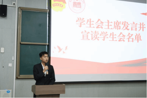 随后,员工会部长代表吴涵飞和自律委员会部长代表江立飞分别上台发言。他们结合自身工作经历,分享了在员工会和自律委员会中的工作心得与体会,两位同学均表示,希望新成员能保持创新热情,在服务同学中实现个人成长,同时鼓励大家积极投身联系我们,为公司发展贡献力量。