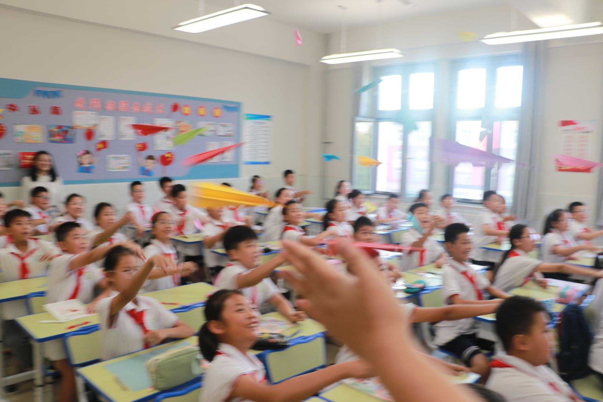 一架小小的纸飞机,承载着孩子们关于未来、关于成长、关于探索的梦想,在愉快的欢呼声中向空中飞去……