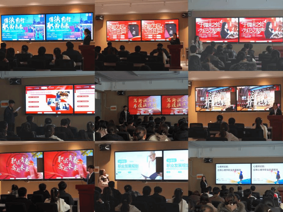 赛场上,选手们以多元风格展现职业愿景,从“社区红色服务站的社会工作者”到“乡村振兴中的社会治理研究员”,从“知识产权专利代理师”到“公益律师”,多元职业目标彰显了同学们的家国情怀与专业担当。评委们从目标契合度、路径可行性、展示表现力等维度进行综合评分,并针对每位选手的规划细节提出针对性建议。付国花在总结点评中充分肯定了选手们的表现:“同学们的规划既有理论深度,又贴近实际需求,展现了同学们的家国情怀与责任担当。”她勉励全体同学:“职业生涯规划不仅是纸面方案,更需以持续行动践行理想。希望同学们以赛为契机,将个人成长融入国家发展,在服务社会中实现人生价值。”
