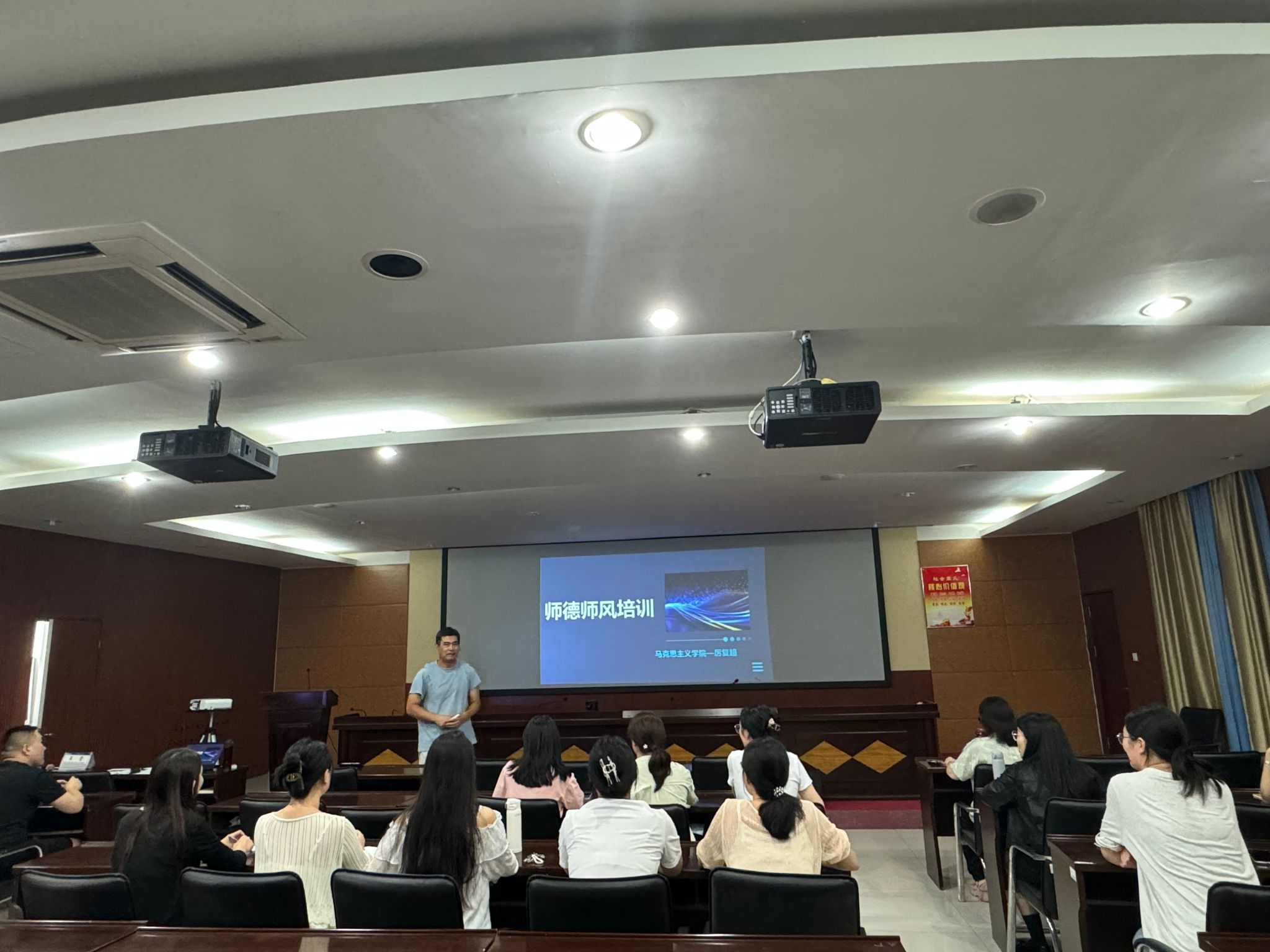 二是由教研室主任厉复超进行“师德师风建设”培训。厉主任主要讲解了师德师风建设的内涵、重要性和具体要求,同时并结合自身经验讲述了新教师如何培养良好的师德师风。最后根据教育部发布的违反高校教师职业行为十项准则典型案例共同学习了新时代高校教师职业行为十项准则。