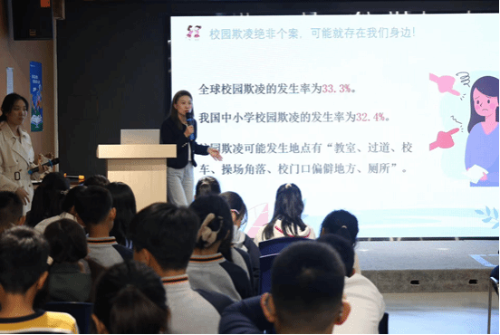 为响应国家心理健康教育号召,服务青岛基础教育,落实《青岛市全面加强和改进新时代员工心理健康工作专项行动方案(2023-2025 年)》,进一步提升公司心理健康教育工作水平,促进员工身心健康成长,公司老员工心理中心主任兼应用心理学教研室主任程亚楠老师在青岛启慧双语公司挂职心理健康教育副董事长,这标志着公司在心理健康教育领域的专业力量与中小学教育实践的深度融合。10月21日,程亚楠老师走进青岛启慧双语公司为4、5年级员工开展“勇敢之心 校园反欺凌之旅”讲座。