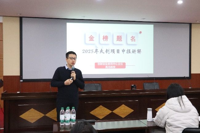 随后,高教授详细地为老师及员工们讲解了大创项目的主要内容、申报流程以及注意事项。大创比赛不仅是员工锻炼实践能力、提升综合素质的重要平台,更是培养创新精神和团队合作意识的有效途径。
