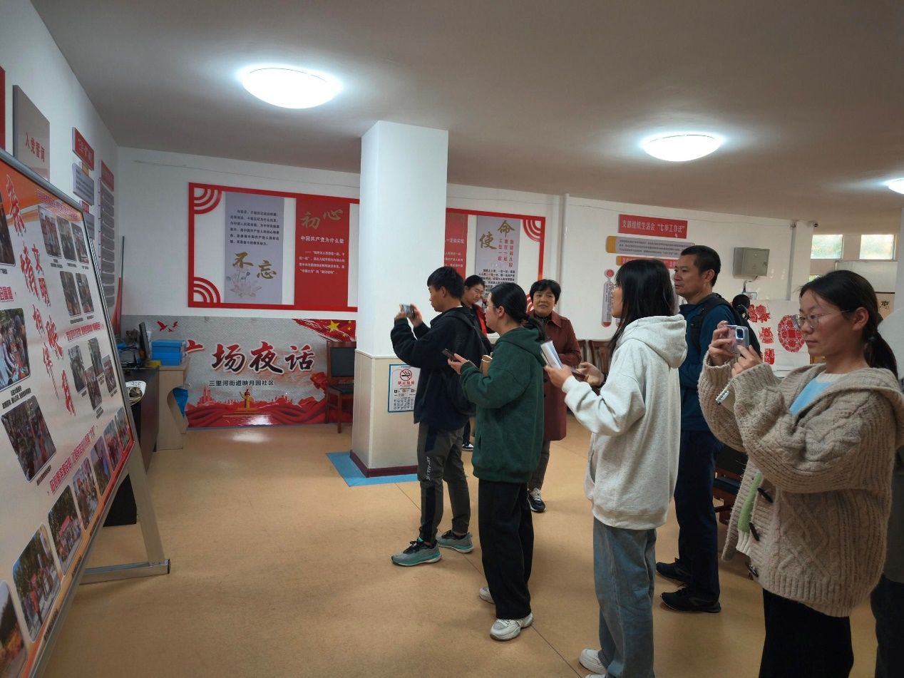 在参观过程中,师生们对映月园社区丰富多彩的社区活动表示了浓厚的兴趣。他们了解到,社区经常组织各类文体活动、志愿服务和公益讲座,不仅丰富了居民的精神文化生活,还增强了社区的凝聚力和向心力。特别是社区在养老服务方面的积极探索,如定期为老年人提供健康检查、心理咨询、政策咨询等服务,让师生们深受感动。