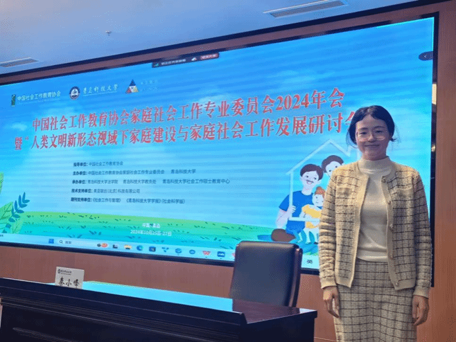 中国社会工作教育协会家庭社会工作专业委员会为推动营造家庭文明新风尚,践行新时代家庭观,提升新时代新征程我国家庭建设的理论和实务水平,进一步促进家庭社会工作的高质量发展,于2024年10月26日至27日在山东省青岛市青岛科技大学(崂山校区)举办了年会暨“人类文明新形态视域下家庭建设与家庭社会工作发展研讨会”,ladbrokes立博教师高玉娇受邀参加,此次研讨会汇聚了众多家庭社会工作领域的专家学者,共同就家庭建设与家庭社会工作的相关议题进行深入研讨。